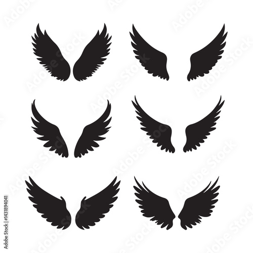 Silhouette Angel Wings Set – Spread and Folded Wing Vector Icons