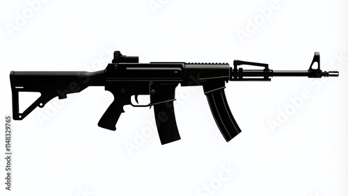 Silhouette Automatic Rifle Isolated White Background Stock Photo, Weapon Silhouette, Gun Silhouette, Firearms Silhouette, Military Silhouette