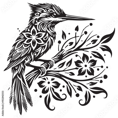 Silhouette Batik Pattern Unique Creative Art On Bird With Tree Isolated In White Background Vector 33