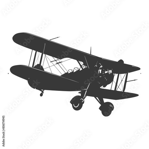 Silhouette Biplane Aircraft black color only