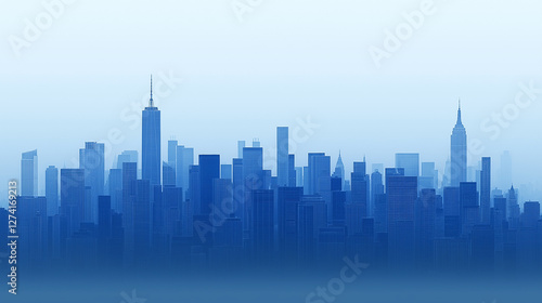 Silhouette Cityscape: A minimalist, monochromatic view of a sprawling city skyline stretching towards the horizon, in tones of blue, evoking a sense of urban grandeur.