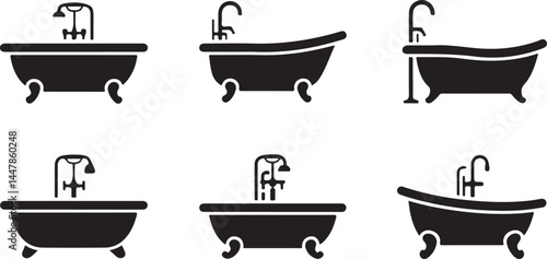 Silhouette Collection of Bathtubs in Various Designs, Perfect for Bathroom, Plumbing, and Home Decor