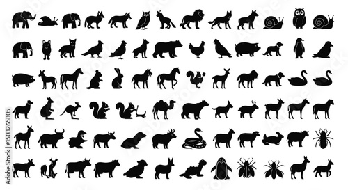 Silhouette Collection of Various Animals Birds and Insects in Black