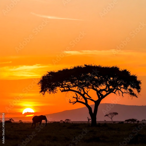 Silhouette elephant sunset savanna