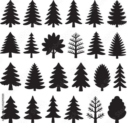 Silhouette Forest A Variety of Evergreen and Deciduous Trees Representing Nature's Diversity and Woodland Ecology Creating a Dense Wooded Environment
