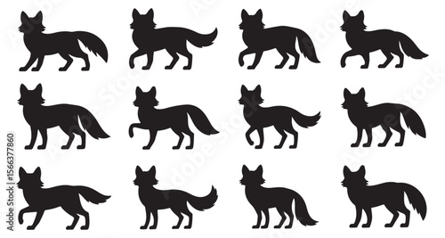 Silhouette Foxes in Varied Poses Graphic Resource Wildlife Inspired Animal Vector Illustration