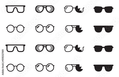Silhouette Glasses Icon Set 12 Stylish Black and White Eyewear Designs