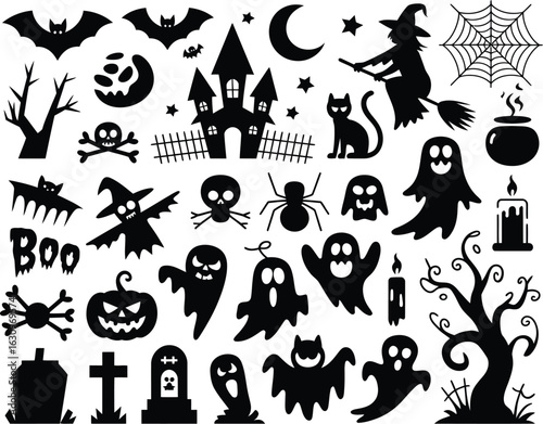 Silhouette Halloween Set: An array of meticulously designed Halloween-themed silhouettes, capturing the essence of spooky celebrations. Featuring iconic figures that embodies the spirit of fright.