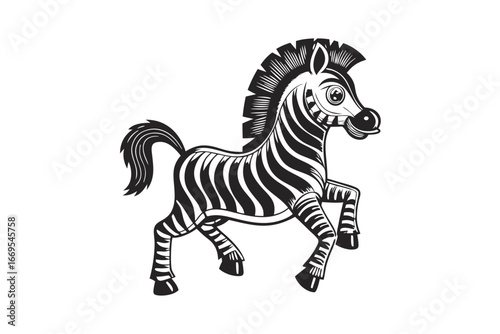 Silhouette Horse Galloping Over Mountain Landscape on White Background