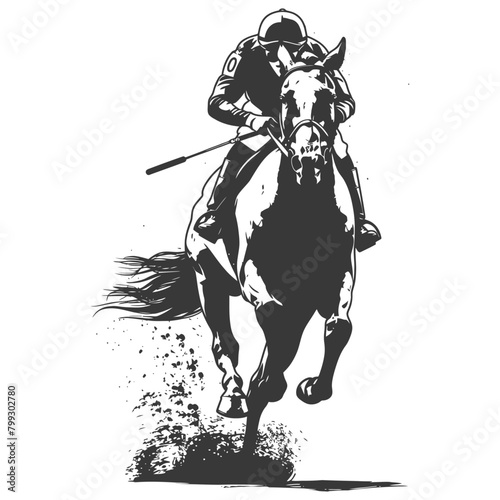 Silhouette horse racing sport single man black color only
