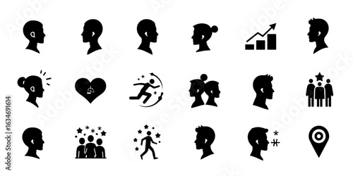 Silhouette Icon Set for business, Manager icon set., Finance Icon set, Business Growth And Development Icons, Diversity Belonging Icons