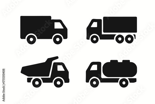 Silhouette icons of four distinct commercial trucks on white background