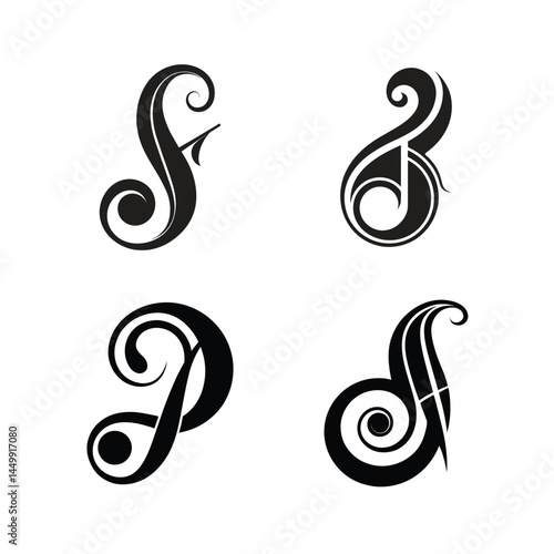 Silhouette Icons of Music Notes Vector Collection on Clean White