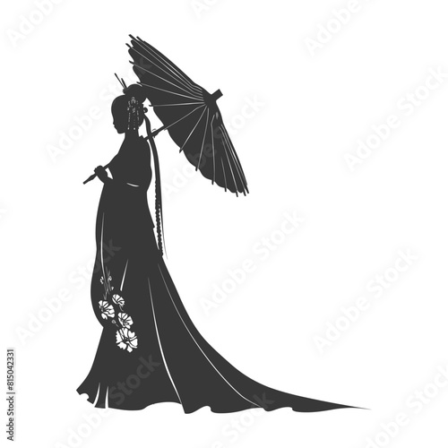 Silhouette independent chinese women wearing hanfu with umbrella black color only