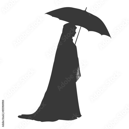 Silhouette independent emirates women wearing Abaya with umbrella black color only