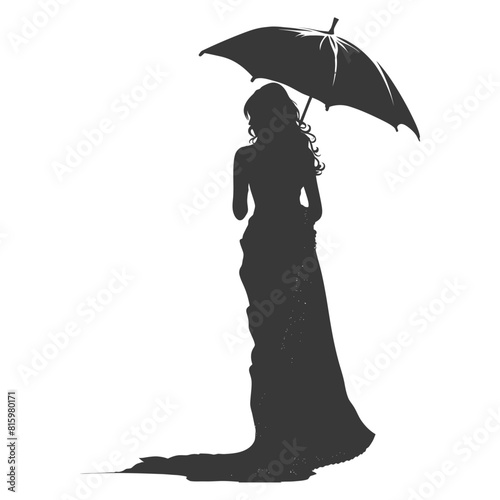 Silhouette independent indian women wearing Saree with umbrella black color only