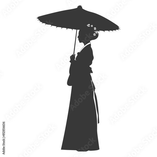 Silhouette independent korean women wearing hanbok with umbrella black color only