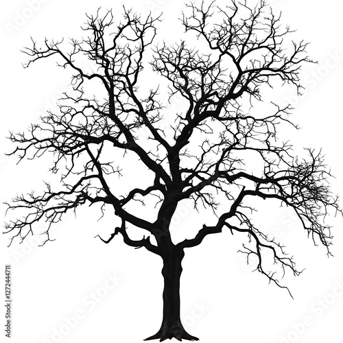 Silhouette of a Bare Tree Against a Clean White Backdrop Unveiling Nature s Intricate Winter Form.