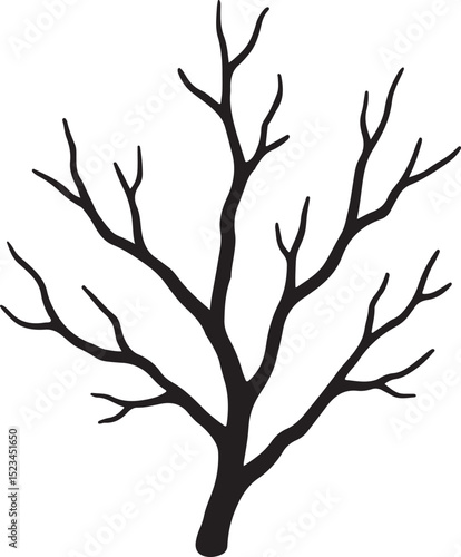 Silhouette of a bare tree with detailed branches in a minimalist black and white style perfect for elegant design projects and seasonal themes.