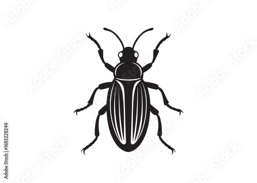 Silhouette of a beetle bug, black vector illustration of crawling insect animal for design projects.