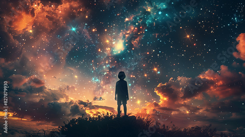 silhouette of a boy looking up at the stars in wonder and hope for the future