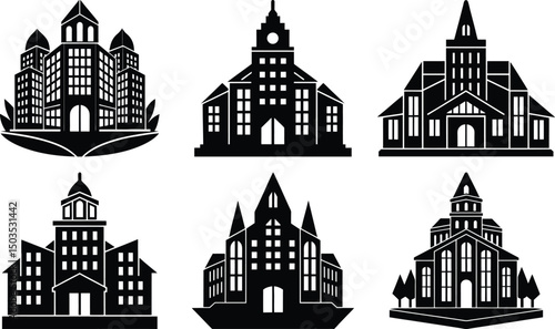 silhouette of a church in the city white background