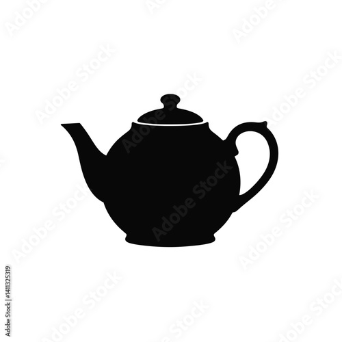 Silhouette Of A Classic Teapot With Lid And Handle On White Background