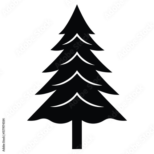 Silhouette of a Coniferous Evergreen Tree with Distinct Branches and a Defined Trunk