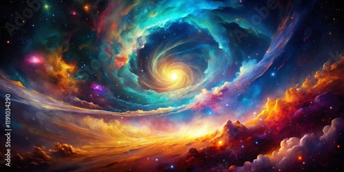 Silhouette of a Cosmic Swirl Nebula in Vibrant Hues