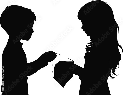 Silhouette of a couple and two women in a business meeting vector illustration.