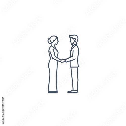Silhouette of a Couple Holding Hands, Minimalist Romantic Illustration