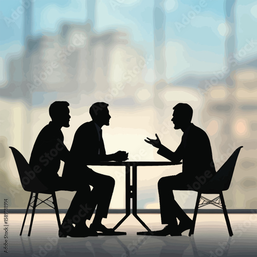 Silhouette of a couple sitting and having coffee together in a cafe