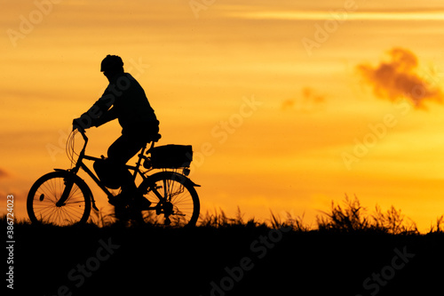 silhouette of a cyclist on the sunset