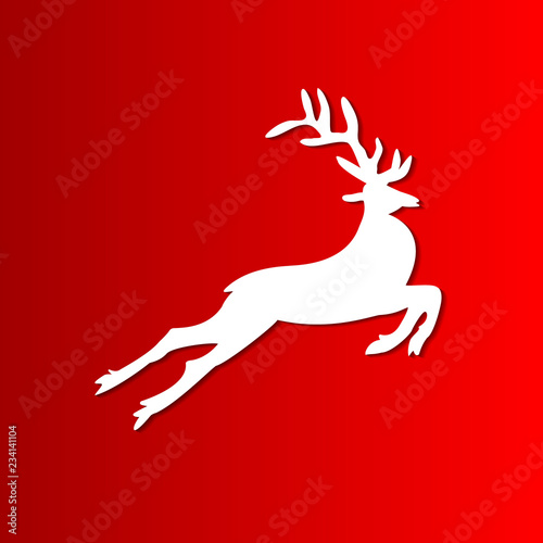 Silhouette of a deer for Christmas isolated on red background.