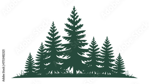 Silhouette of a dense evergreen forest on a white background