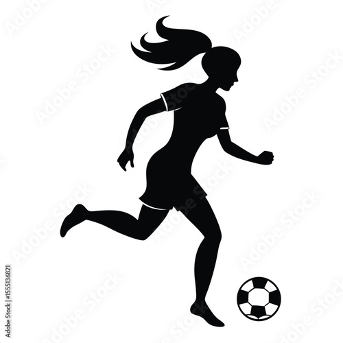 Silhouette of a Female Soccer Player Kicking a Ball Illustrating Sportsmanship Athleticism and Female Empowerment in a Minimalist and Graphic Design Style