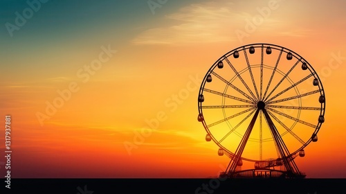 Silhouette of a Ferris wheel at twilight, dramatic lighting, vibrant green screen