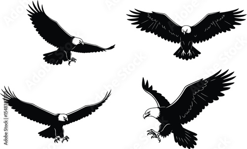 Silhouette of a flock of flying birds against a clean white background concept