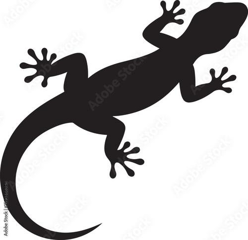 Silhouette of a Gecko Clinging to a Surface, Revealing its Distinctive Toes, A Simple Black and White Silhouette of a Gecko with its Curled Tail and Sticky Pads