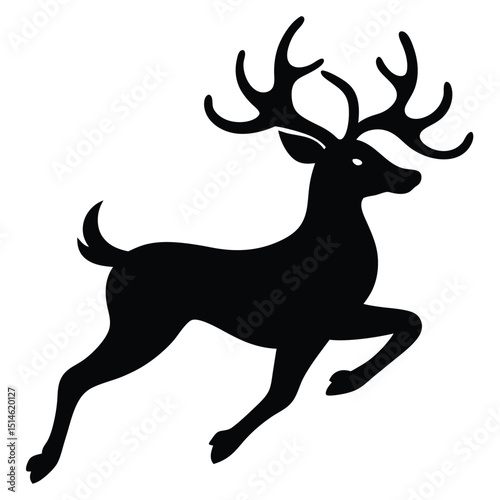 Silhouette of a jumping stag deer in black isolated on a white background