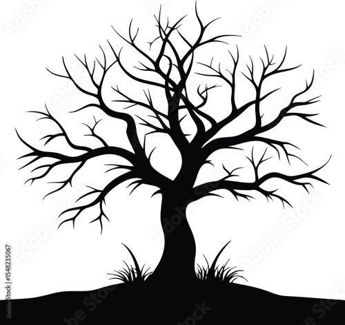 Silhouette of a Leafless Tree Winter Branches and Barren Landscape Illustration