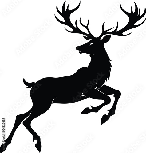 "Silhouette of a Leaping Deer - Wildlife Illustration on an Isolated White Background"