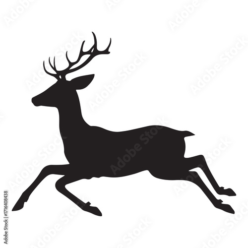 Silhouette of a majestic stag with large antlers leaping gracefully across a white background Vector Art
