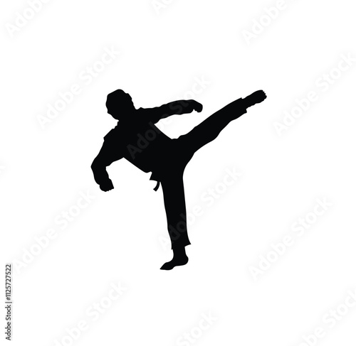 Silhouette of a male model performing a martial arts kicking pose.