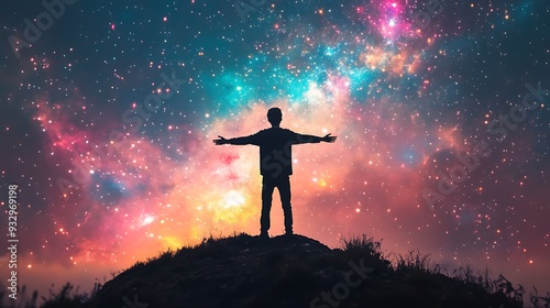 Silhouette of a man reaching up towards the stars, symbolizing ambition and dreams.