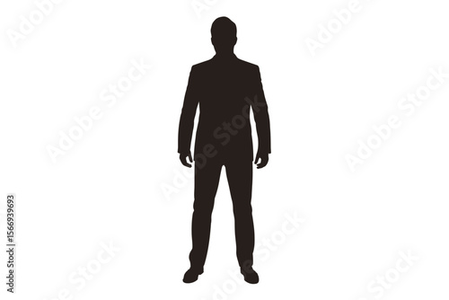 Silhouette of a man standing on a white background in formal attire