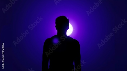 Silhouette of a Person Against a Vibrant Purple Background with Radiant Light