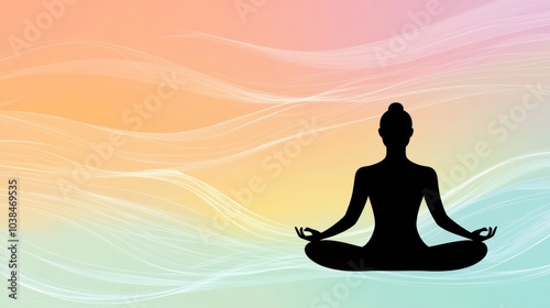 Silhouette of a person meditating in a calm, pastel-colored background, symbolizing mindfulness and inner peace