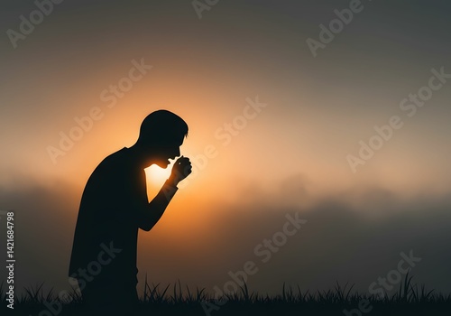 Silhouette of a Person Praying at Sunrise A Moment of Faith and Reflection