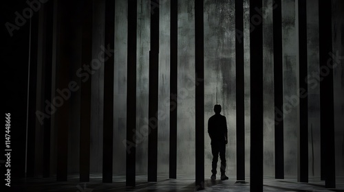 Silhouette of a person standing behind bars, symbolizing confinement and the struggle for freedom, reflecting themes of resilience and hope in overcoming obstacles